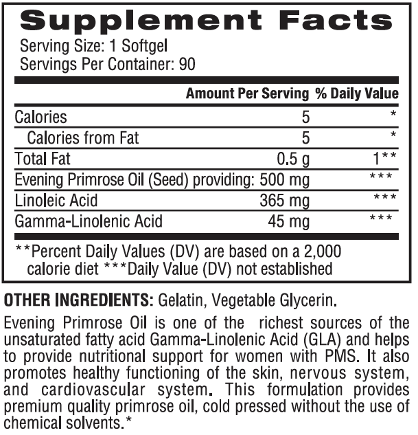 Pronova Evening Primrose Supplement Facts/ Ingredients Melissa July 04, 2023 19:02 Updated Comments 0 comments Article is closed for comments.